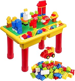 burgkidz ブロックテーブル 子供用テーブル ブロック付き 塗り絵 水遊び お絵描き 収納 ブロックプレイ 多機能 子供用テーブル 主要な国際ブランドとのブロック 互換 誕生日 プレゼント 贈り物