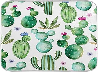Wfrish 食器乾燥マット キッチン用 水彩 サボテン 花 春 花柄 サボテン 乾燥マット 16x18インチ 吸収性食器マット 乾燥パッド 食器水切りラック マット キッチンアクセサリー