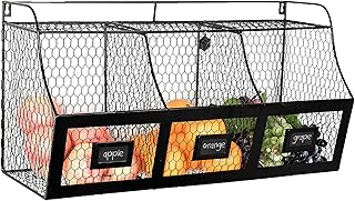 大型カントリーラスティックメタルワイヤー 壁掛けフルーツバスケット ストレージビン 黒板ラベル付き ブラック