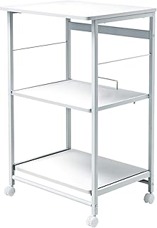 イーサプライ キッチンラック ロータイプ レンジ台 3段 スライド棚 幅56×奥行45×高さ90cm キャスター付き ホワイト EEX-HR02