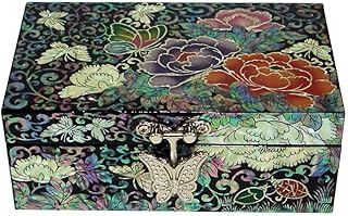 螺鈿細工 木製 牡丹 蝶々柄 ジュエリーボックス アクセサリーケース ミラー付き イヤリング収納 指輪収納 ブレスレット収納