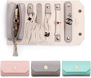Vee トラベルジュエリーオーガナイザー ロール折りたたみ式ジュエリーケース しなやかなレザー 複数のブレスレット イヤリング ネックレス リング 腕時計用 旅行に最適 (グレー)