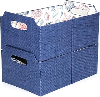 EZDeco 積み重ね可能なシェルフストレージバスケット ハンドル内蔵 折りたたみ式ストレージビン 装飾整理バスケット 入れ子バスケット 寝室 保育室 リビングルーム用 2個セット