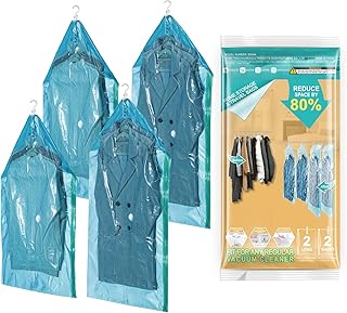 吊るせる圧縮袋 衣類収納袋 防塵防湿 コート洋服収納袋 藍色透明 吊るす収納 吊るせる衣類圧縮パック 衣類真空パック 透明 吊るせるデザインで 省スペース 4枚組 135*70 cm 4枚
