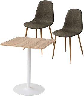 エムール ダイニングテーブル セット 2人 2人用 60cm テーブルセット ダイニングチェア 2脚セット レザー調 テーブル 北欧 正方形 ナチュラル オリーブグリーン