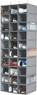 Coastal rose 靴用クローゼットオーガナイザー 30セクション ハンギングクローゼットオーガナイザー ストレージシェルフ メッシュポケット6個付き 省スペースシューズラックホルダーハンガー グレー