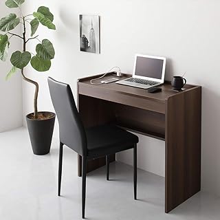 デスク ブラウン 幅83cm×奥行40cm コンセント付き 木製 コンパクト 省スペース オフィス PC パソコン リビング 学習 机