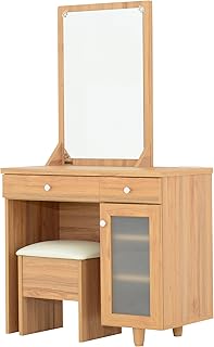 佐藤産業 MILL ドレッサー 幅80cm 奥行40cm 高さ140cm ナチュラル スツール付 コンセント付き 可動棚 ML140-80D DNA