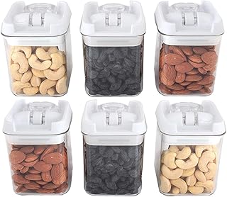 Chefstar Airtight Kitchen Container with flip lock Set of 6 for Kitchen Storage, plastic container,250 ml,white colour