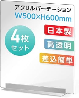 4枚セット 日本製 強度バージョンアップ アクリルパーテーション 透明 W600×H500mm デスクパーテーション アクリル板 仕切り板 間仕切り 衝立 受付 角丸加工 組立式 居酒屋 中華料理 宴会用 飲み会 レストラン 食事 飲食店 オフィス 学校 病院 薬局【受注生産、返品交換不可】jap-r6050-4set